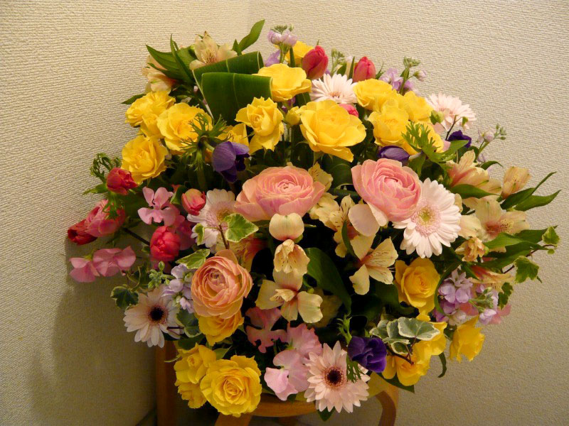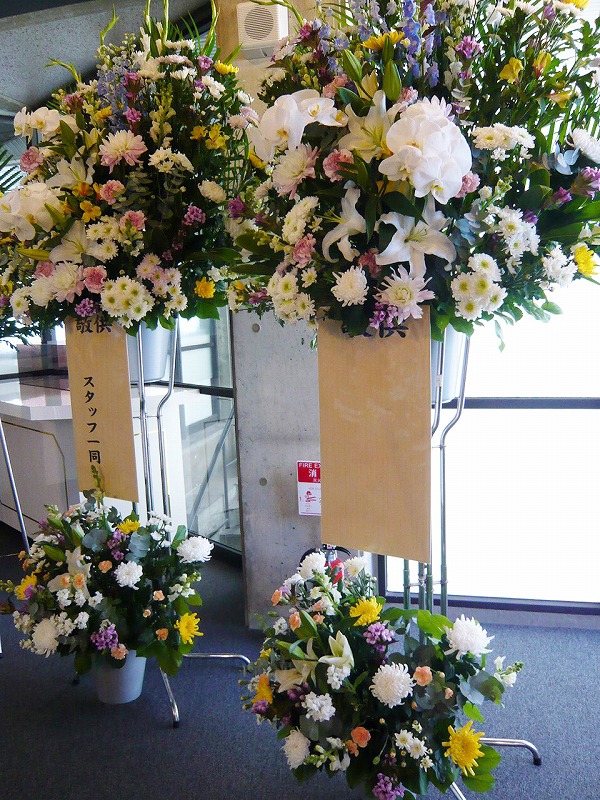 | お祝い用に鮮やかな花台を | 花が大好きだったあの人へ |