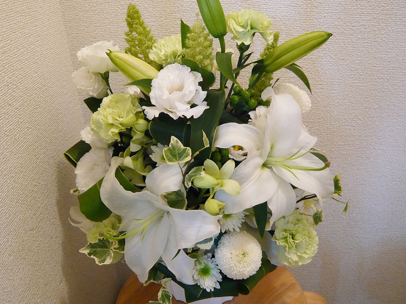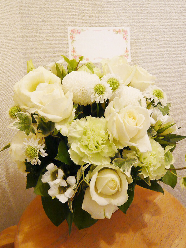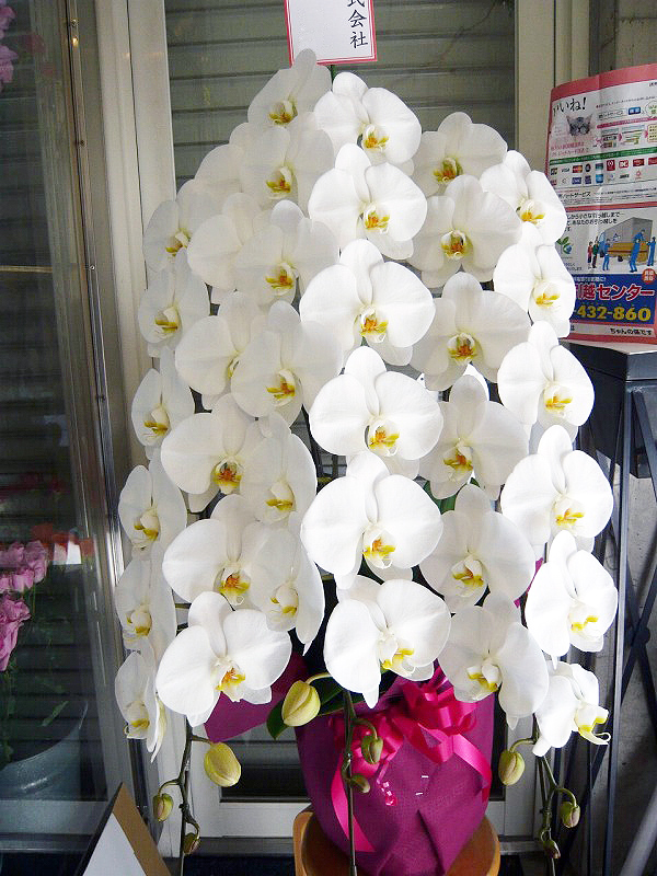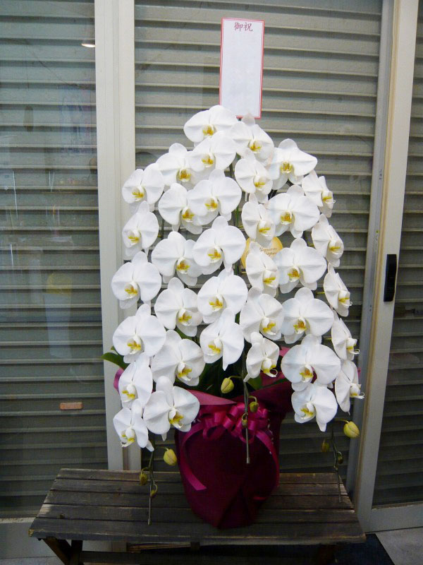 | 白を基調とした清楚で上品な花々 | 開店や周年、リニューアルのお祝いにも |