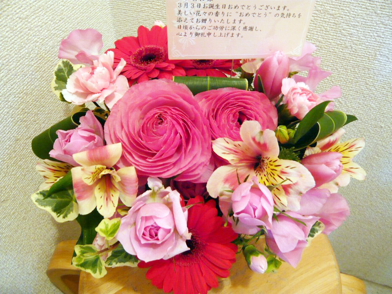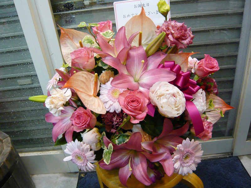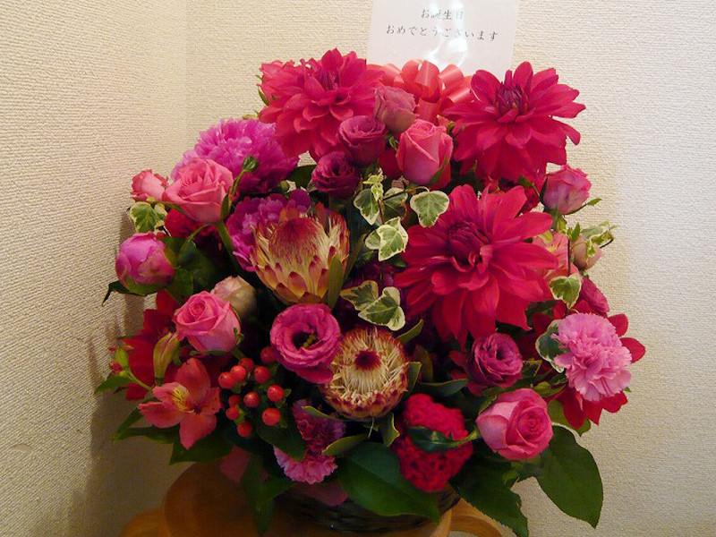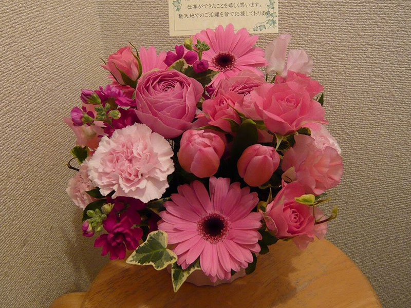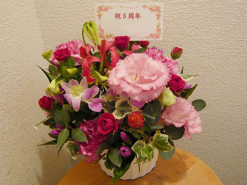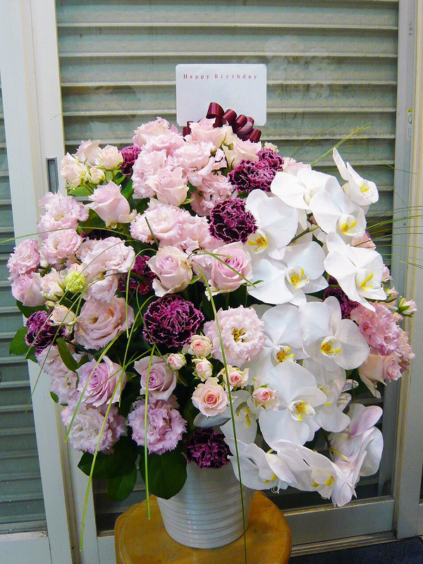 | 開店や周年、リニューアルのお祝いにも | ピンクを基調とした可愛らしい花々 |