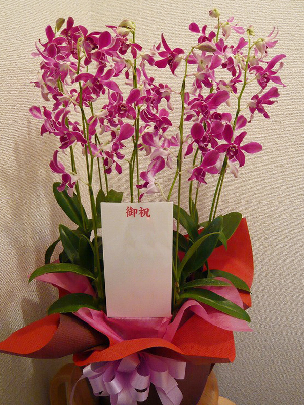 | 御祝に鮮やかなグラデーションの蘭を | デンファレ(蘭)の花言葉は「お似合い」 |