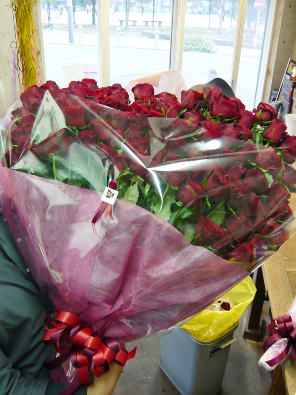 | 100本分のバラと一緒にたくさんの気持ちを送ります | お祝い事にピッタリの賑やかな花々 |