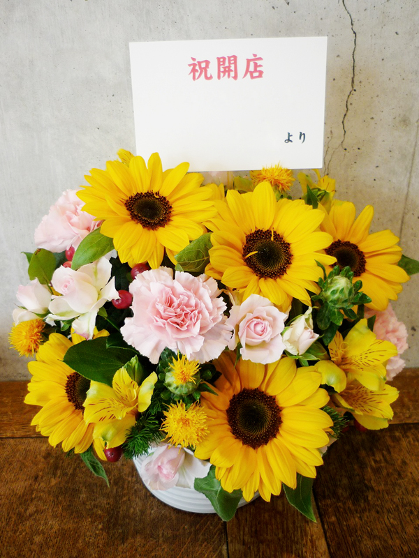 | 夏をイメージして、ヒマワリが主役の元気な花々。 | 喜ぶ顔を浮かべながらご祝福の花を贈ります。 |