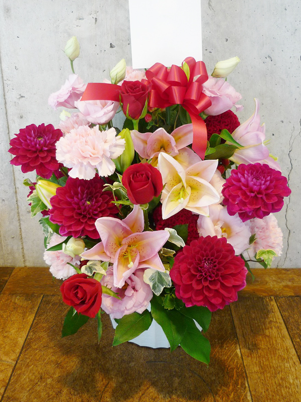 | 可愛らしいピンクの花々をお祝いを。 | 日頃の感謝の気持ちをたくさんの花々に込めて。 |