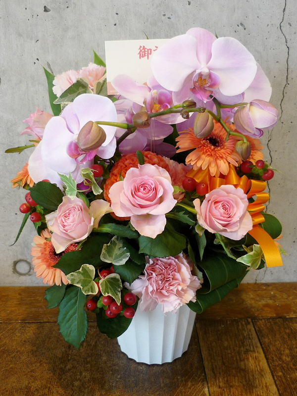 | 開店のお祝いに、美しいお花とお祝いの気持ちを込めて。 | ボリュームがあって豪勢なアレンジをお祝いに |