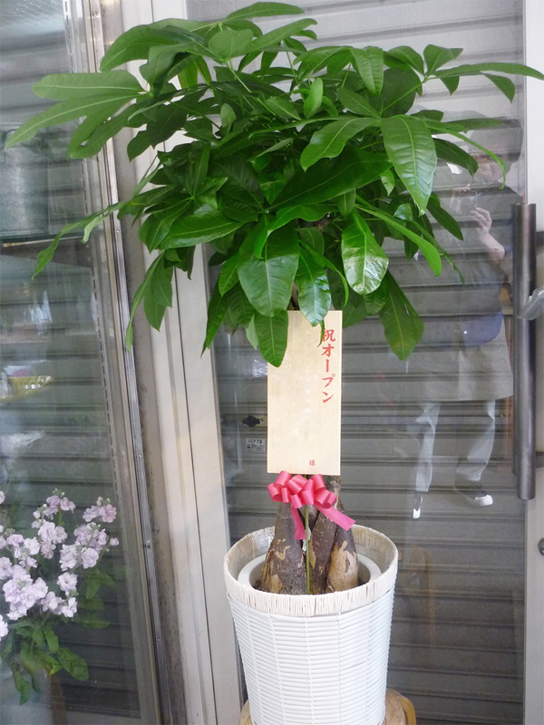 | ボリュームがあって豪勢なアレンジをお祝いに。 | お祝いに喜ばれる観葉植物「パキラ」。 |