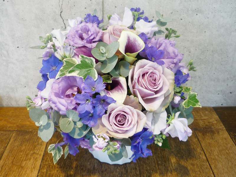 | プレゼントする人の雰囲気に合わせた美しい花々。 | シックな印象のある色使いは、飾る場所を選びません。 |