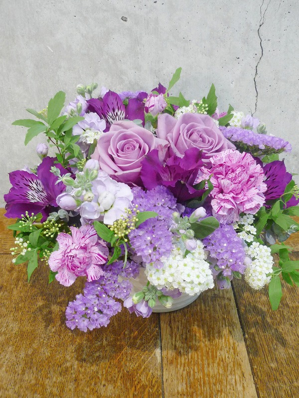 | 送る方の雰囲気に合わせた、シックな色の花々。 | お相手や、シーンに合わせてお作りいたします。 |