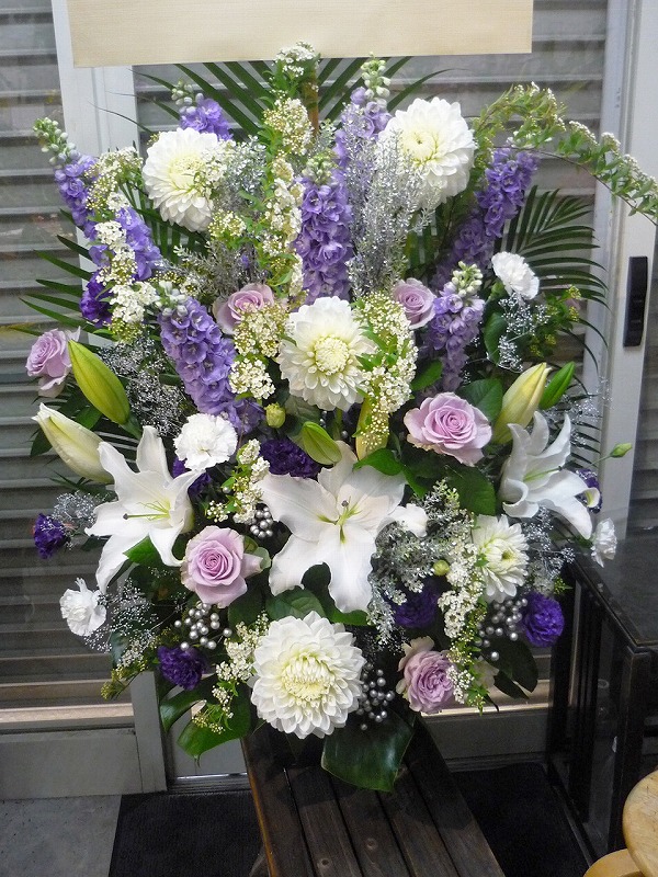 | シックな印象のある色使いは、飾る場所を選びません。 | 華やかにその場を彩る豪華なフラワースタンド。 |