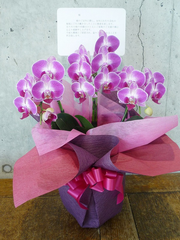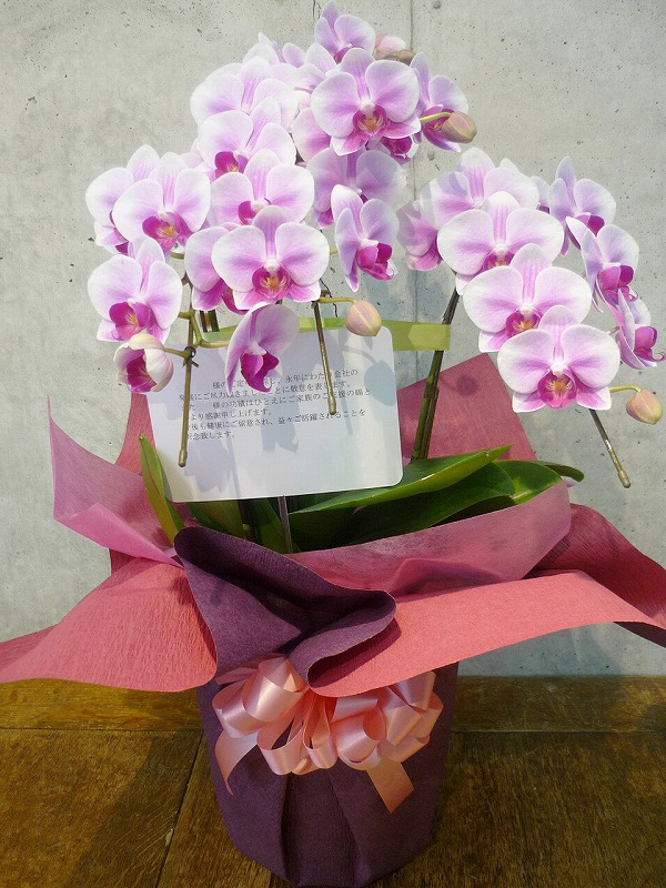 | 色とりどりの花のスタンドでお祝いの気持ちを。 | 大事な方への贈り物に、ピンクの胡蝶蘭を。 |