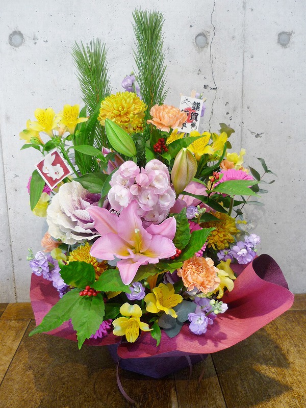 | 新しい年の幕開けは、美しい花々と共に。 | お正月を祝う、ボリュームたっぷりの晴れやかなアレンジ |