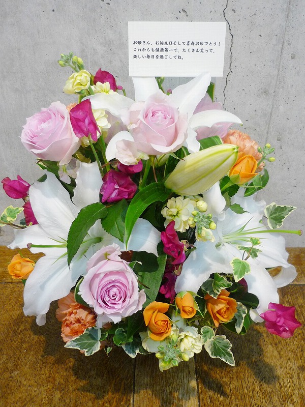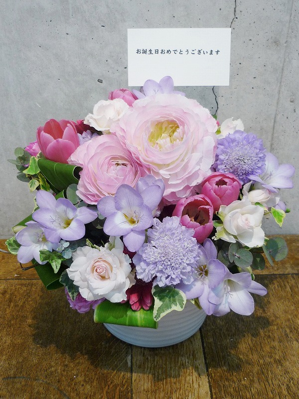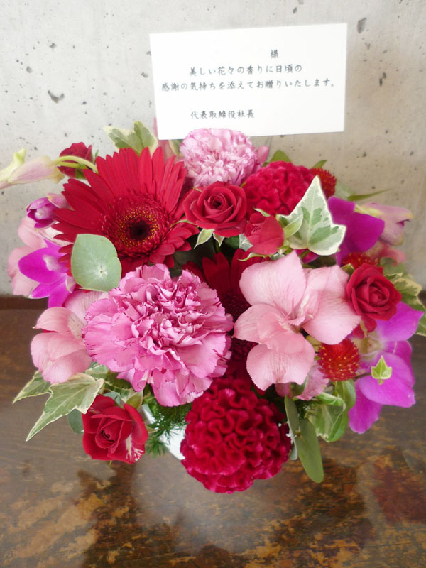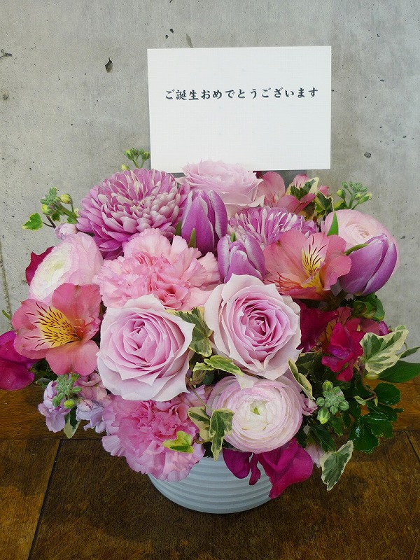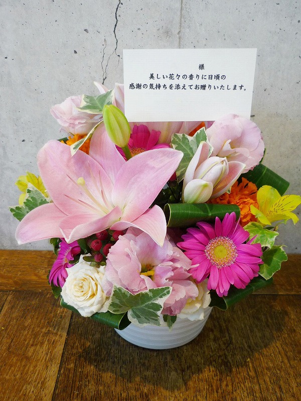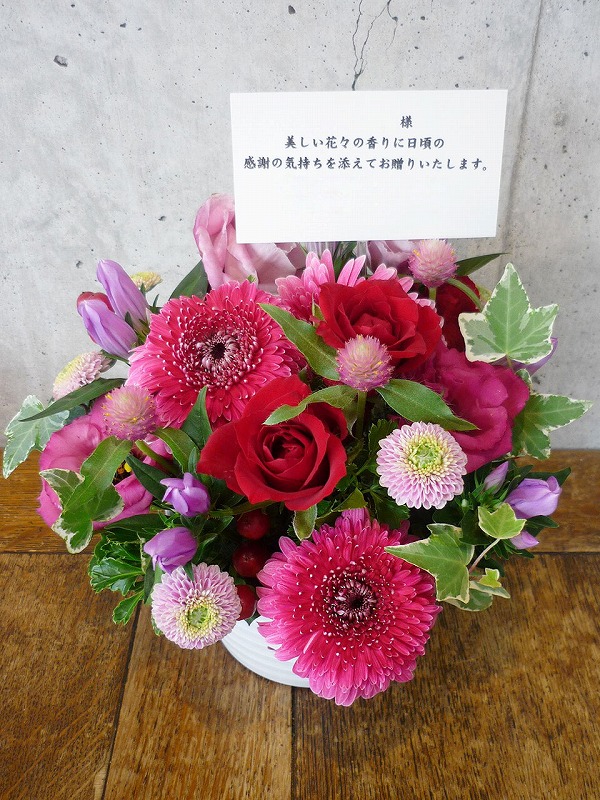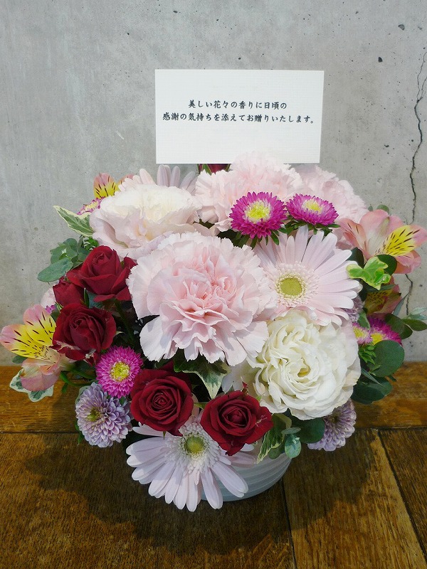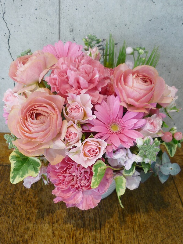 | 可愛らしいピンクの花々をお祝いを。 | 日頃の感謝の気持ちをたくさんの花々に込めて。 |