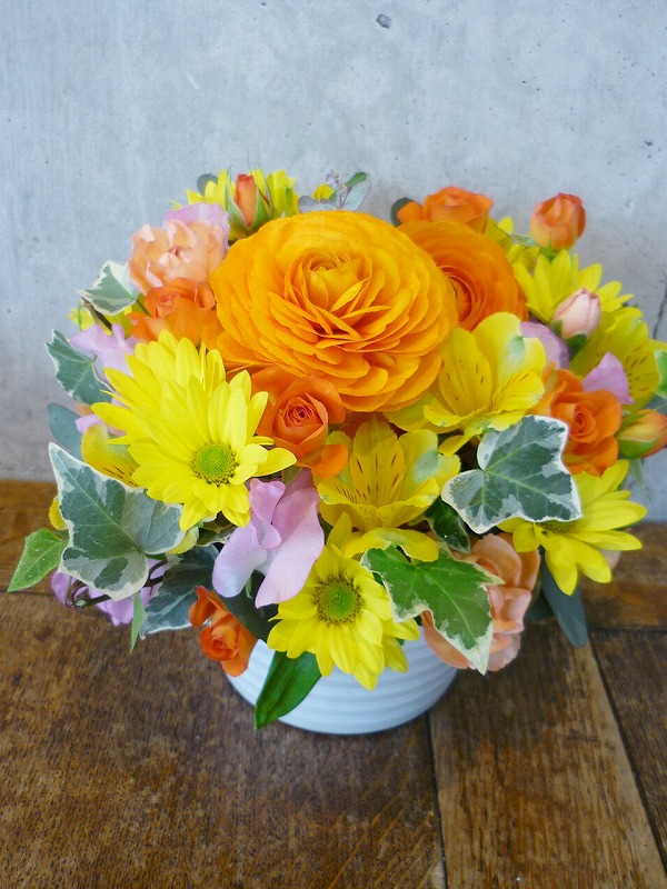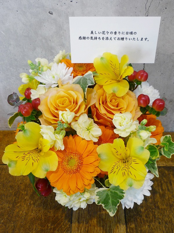 | プレゼントする人の雰囲気に合わせた明るい花々。 | 日頃の感謝の気持ちをたくさんの花々に込めて。 |