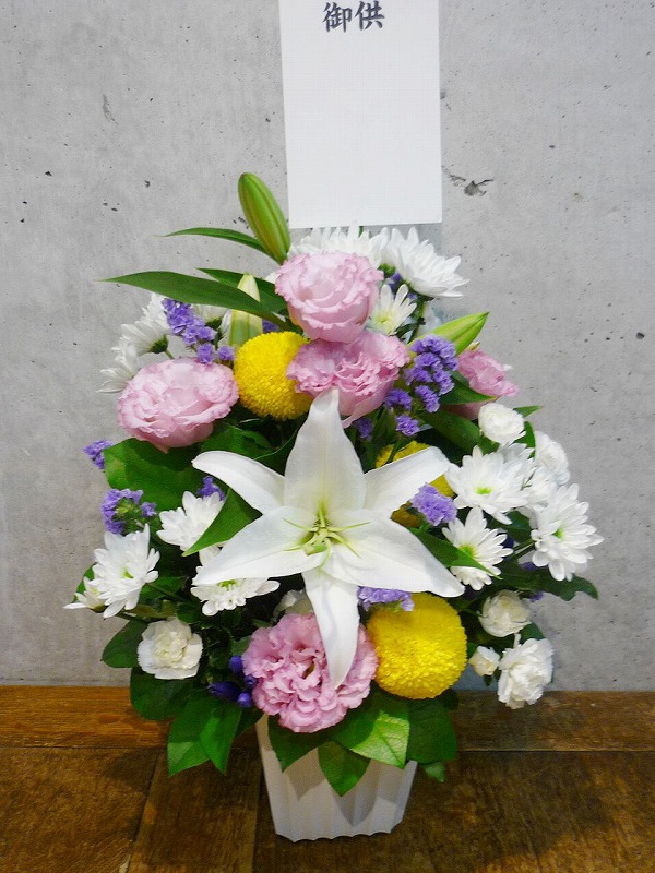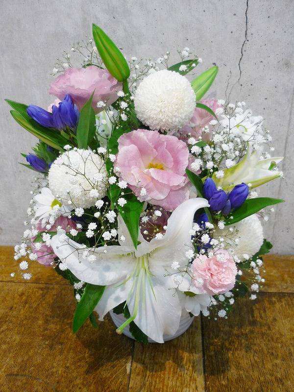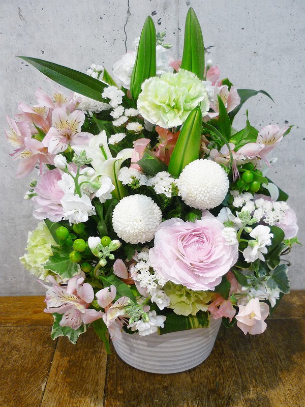 | プレゼントする人の雰囲気に合わせた明るい花々。 | 清らかな白い花々は、天国にもきっと届きます。 |