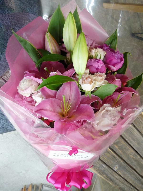 | プレゼントする人の雰囲気に合わせて花を贈ります。 | 伝えたい気持ちと共に贈る、迫力ある百合の花束。 |