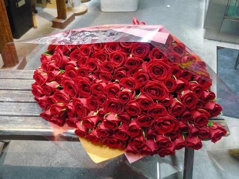 | バラの花束は108本。108本分の想いを花と共に。 | 喜ぶ顔を浮かべながらご祝福の花を贈ります。 |