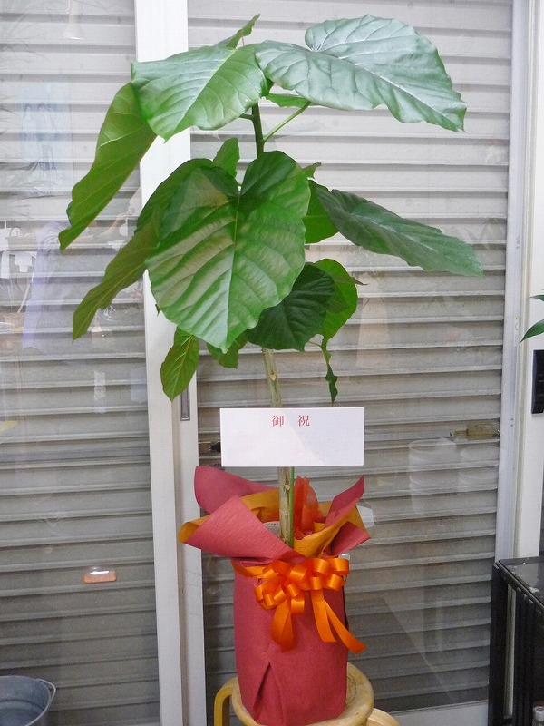 | ボリュームがあって豪勢なアレンジをお祝いに。 | お祝いに喜ばれる観葉植物「ウンベラータ」。 |