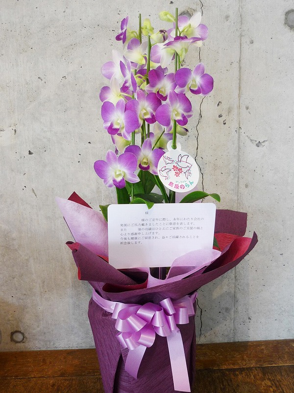 | 開店のお祝いに、美しいお花とお祝いの気持ちを込めて。 | 凛とした胡蝶蘭をお祝いの言葉と共に。 |