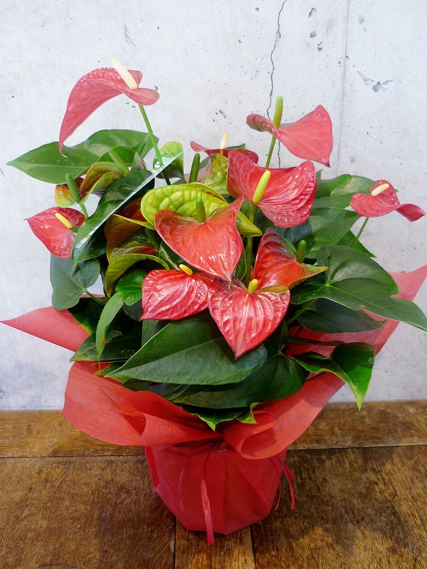 | 開店のお祝いには美しいお花とお祝いの気持ちを込めて。 | 鮮やかな色と個性的な姿の「アンスリューム」。 |