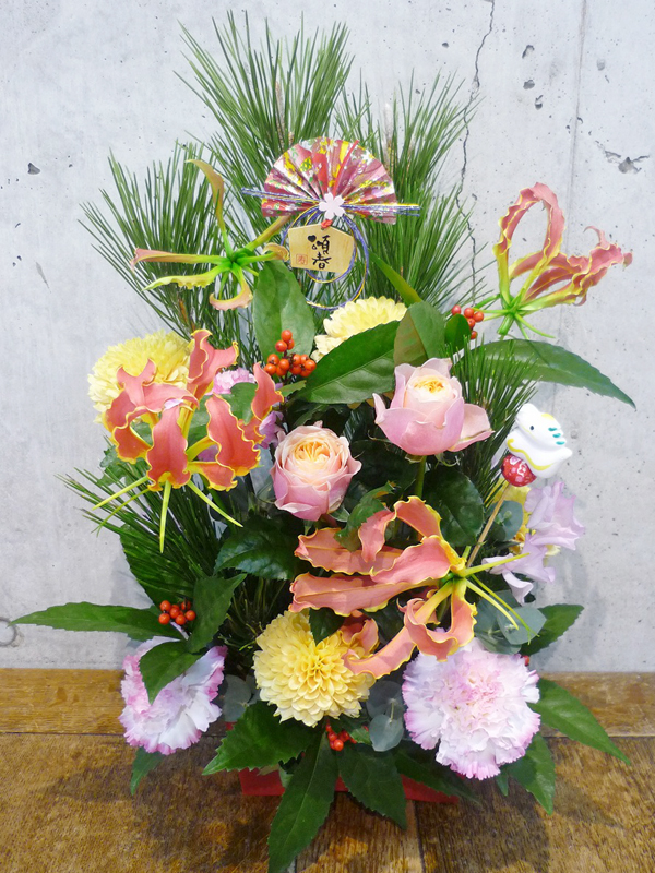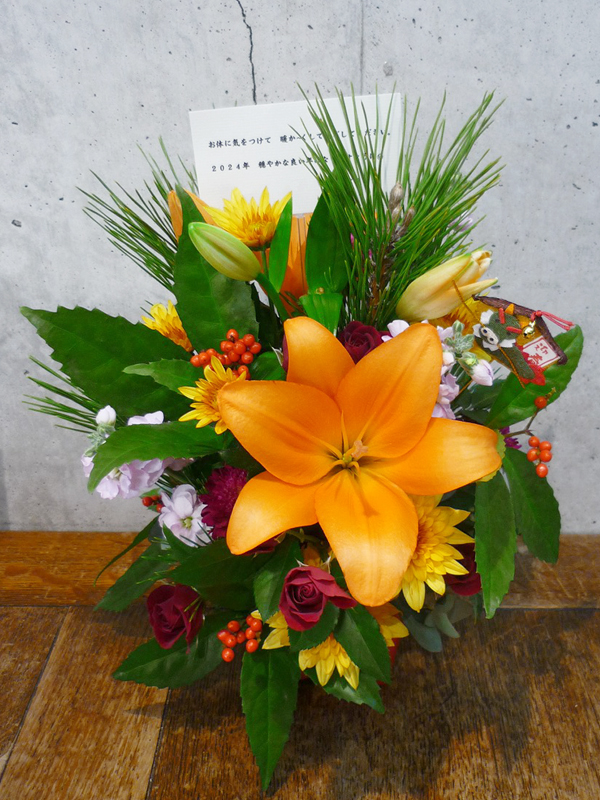 | 新しい年の幕開けは、美しい花々と共に。 | お正月を祝う、ボリュームたっぷりの晴れやかなアレンジ |