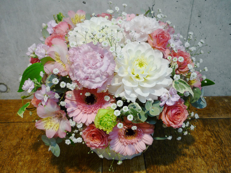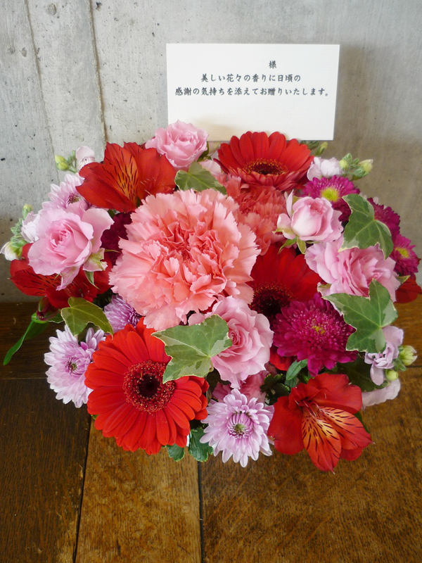 | 可愛らしいピンクの花々をお祝いを。 | 日頃の感謝の気持ちをたくさんの花々に込めて。 |