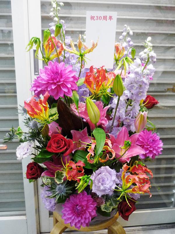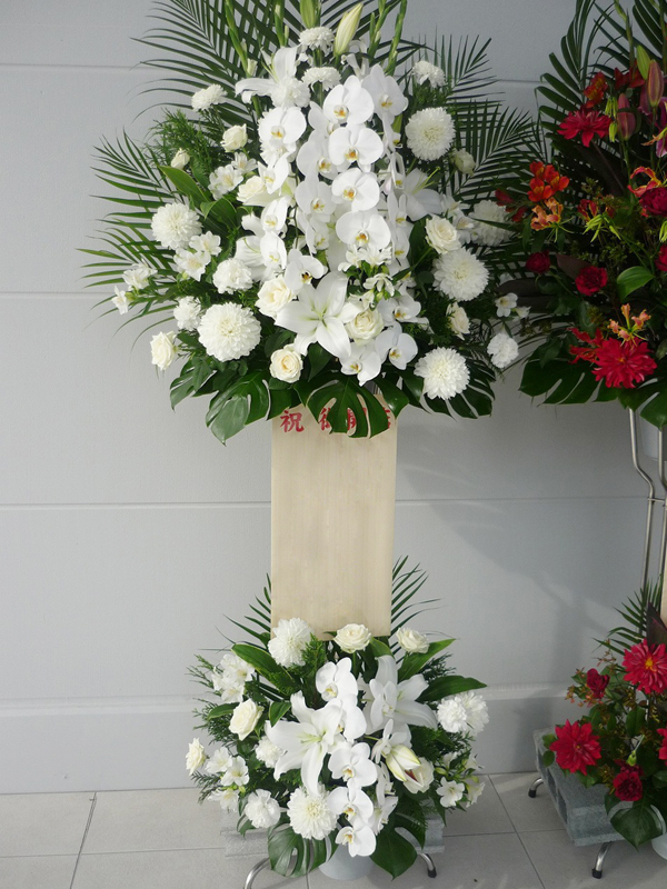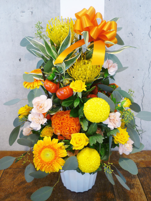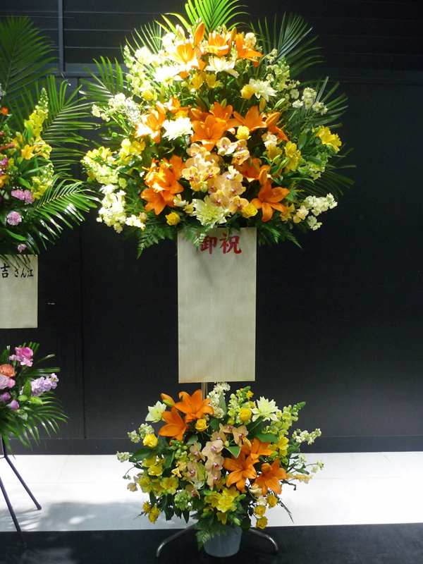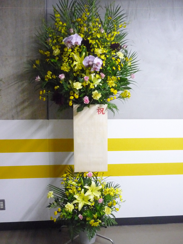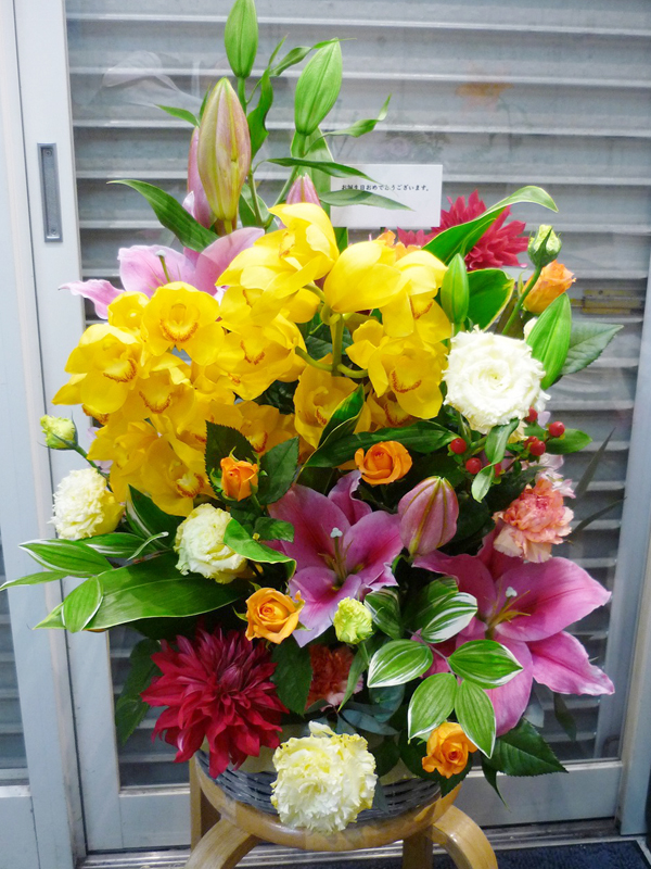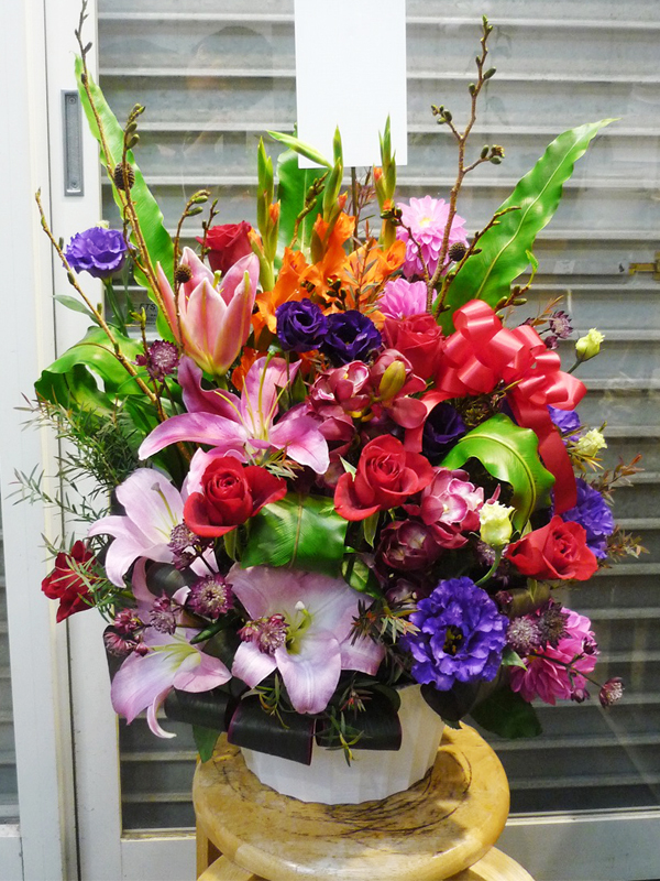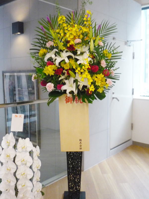 | 開店のお祝いに、美しいお花とお祝いの気持ちを込めて。 | 色とりどりの花のスタンドでお祝いの気持ちを。 |