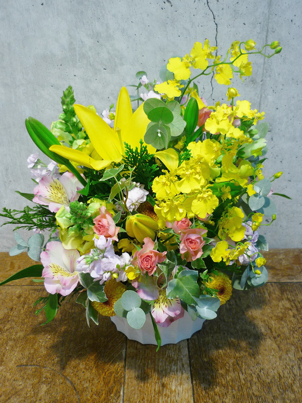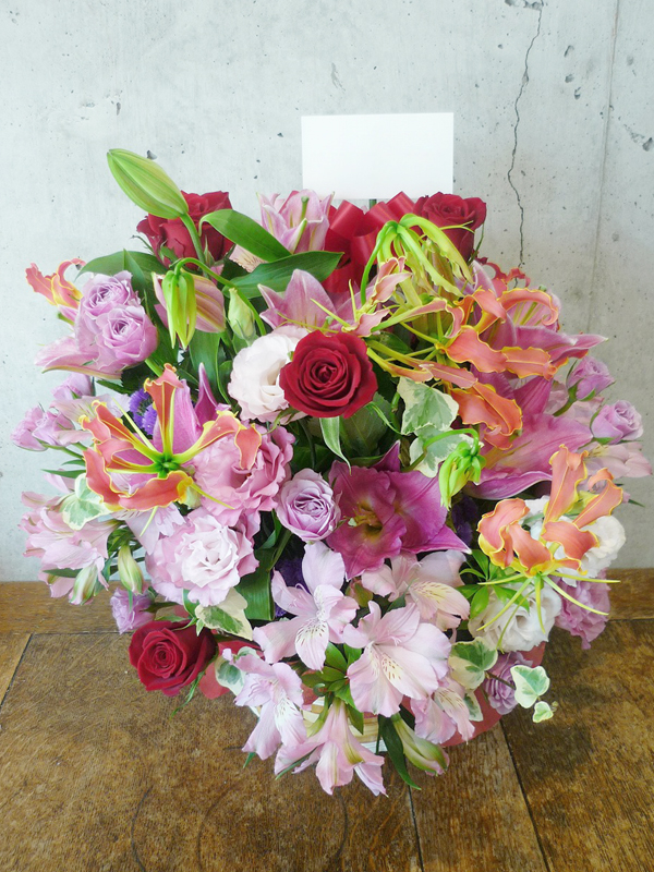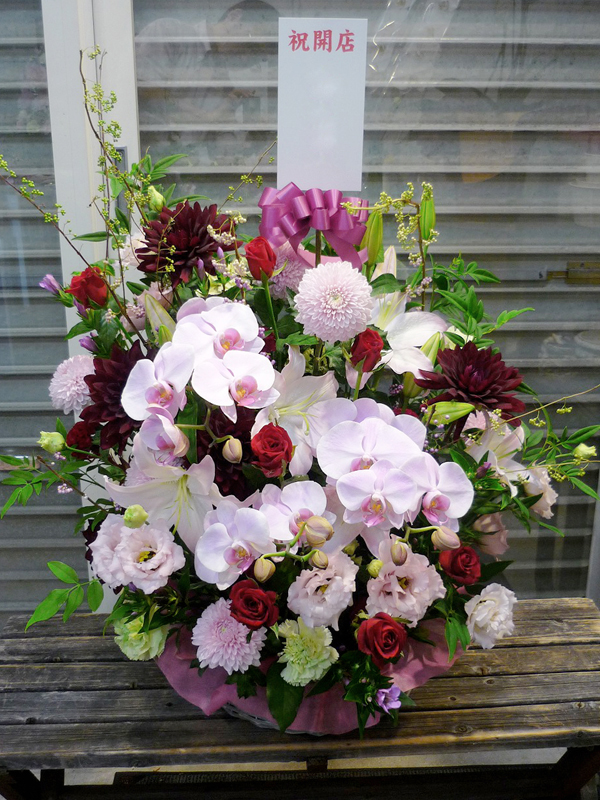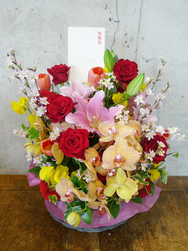 | 開店のお祝いに、美しいお花とお祝いの気持ちを込めて。 | ボリュームがあって豪勢なアレンジをお祝いに |