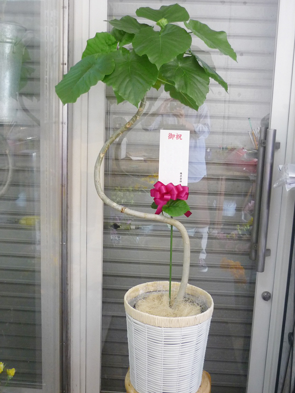 | 色とりどりの花のスタンドでお祝いの気持ちを。 | お祝いに喜ばれる観葉植物「ウンベラータ」。 |