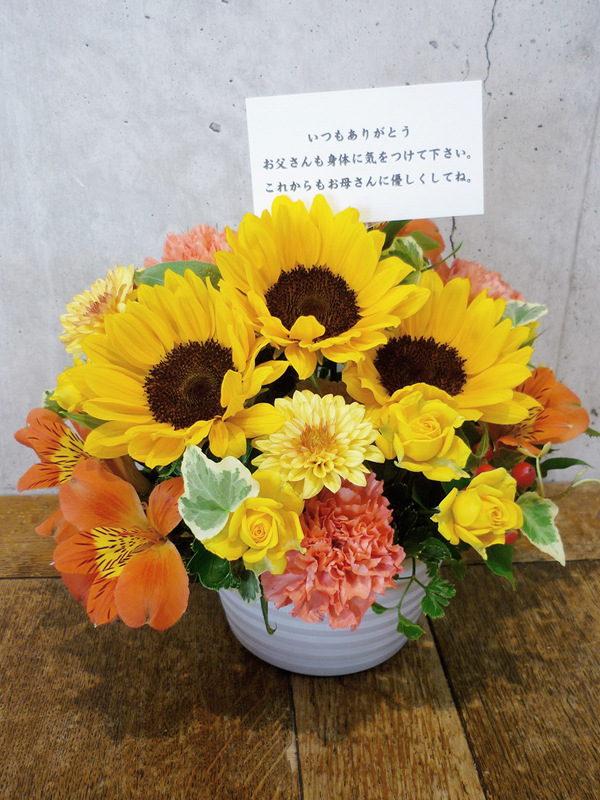 | 父の日に送る感謝の言葉と美しい花々。 | 送る方の雰囲気に合わせてアレンジいたします。 |