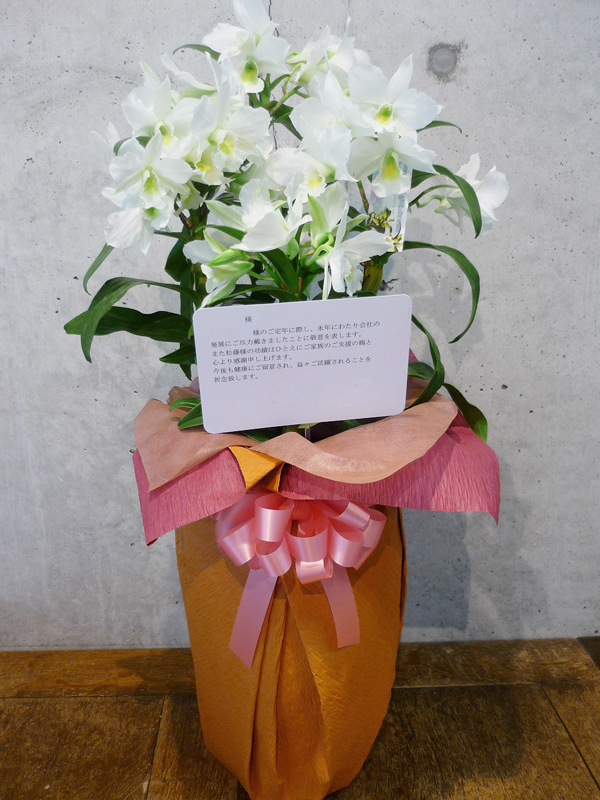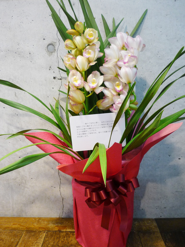 | 様々なシーンに合わせたお花をお作り致します。 | 蘭鉢は「デンドロビューム」花言葉は「わがままな美人」。 |