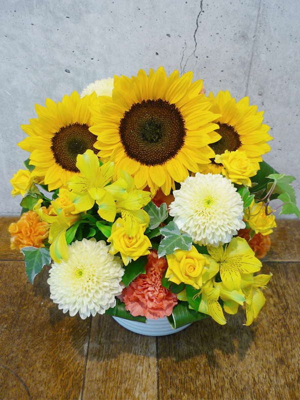 | 夏をイメージして、ヒマワリが主役の元気な花々。 | 喜ぶ顔を浮かべながらご祝福の花を贈ります。 |