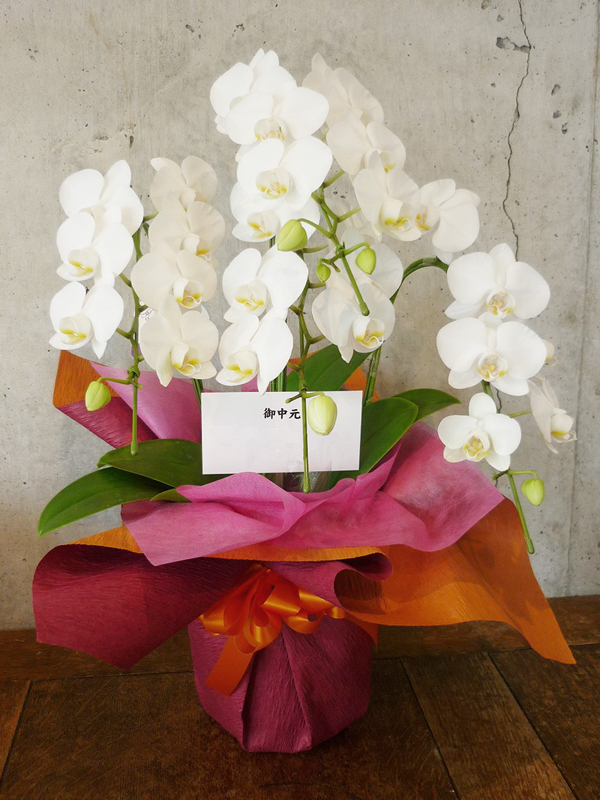 | 凛とした胡蝶蘭をお祝いの言葉と共に。 | 開店のお祝いに、美しいお花とお祝いの気持ちを込めて。 |