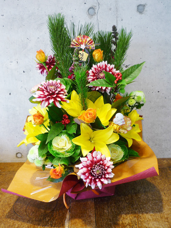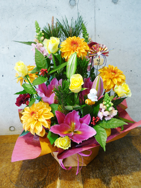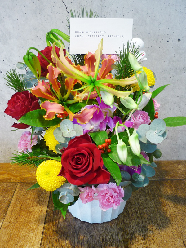 | 新しい年の幕開けは、美しい花々と共に。 | お正月を祝う、ボリュームたっぷりの晴れやかなアレンジ |